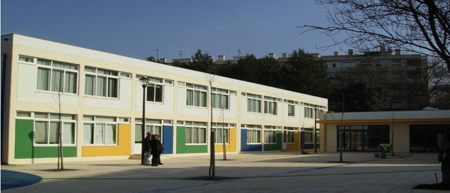 No espaço exterior existem dois telheiros cobertos, um vasto espaço de recreio e rampas ajardinadas e arborizadas. O acesso à escola é realizado através de escadas pela entrada da Rua Atriz Maria Matos.